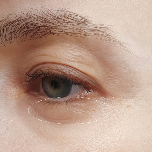 Massage this area with your ring finger starting from the inner corner to the outer corner of your eye.